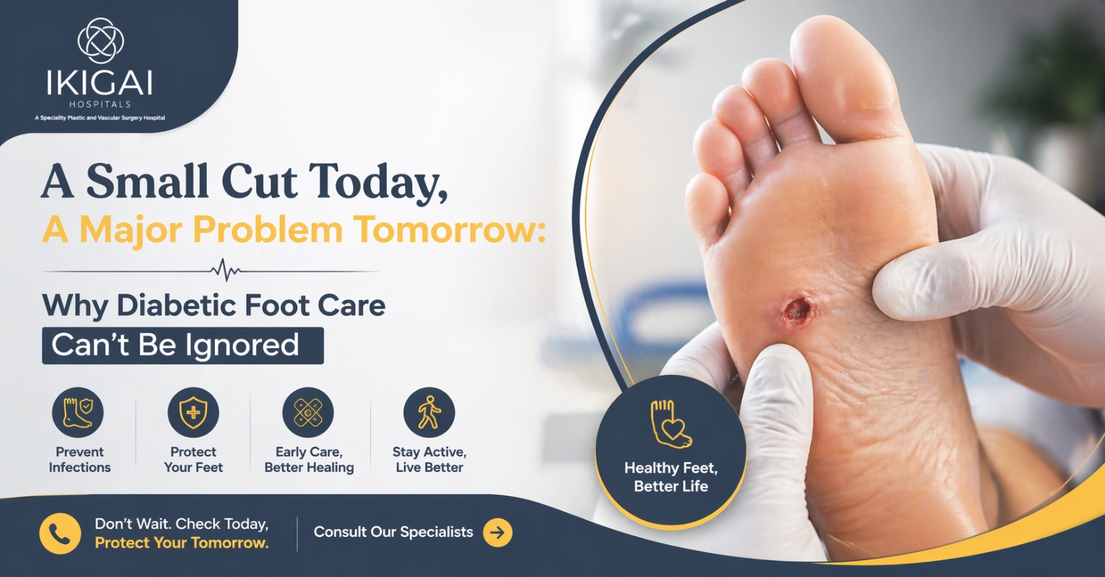 Foot health is one of the most commonly neglected areas of diabetes care. Most people ignore small cuts, cracks, or blisters on their feet, thinking they will heal on their own. In people with diabetes, even minor injuries can quickly become serious. Without treatment, a small cut can become a non-healing wound or an infection, or even lead to amputation. Diabetic foot care is essential, not just important.
